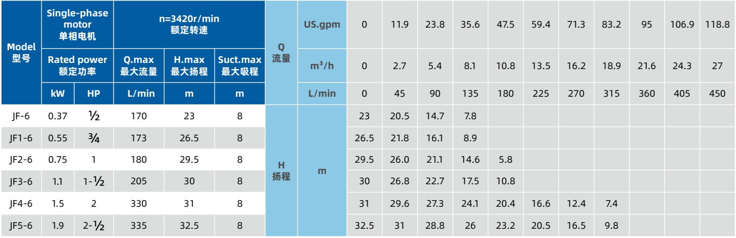 JF 系列單級離心泵,可實現(xiàn)大流量和平穩(wěn)、無脈沖的輸送。同時,該系列泵還提供寬廣的流量調(diào)節(jié)范圍,且不會影響泵的性能。為了獲得良好性能,這些泵設計用于輸送清水或含有少量固體雜質(zhì)的非腐蝕性液體。適用范圍包括滴灌系統(tǒng)、園藝、農(nóng)業(yè)灌溉和工業(yè)配套等領域。