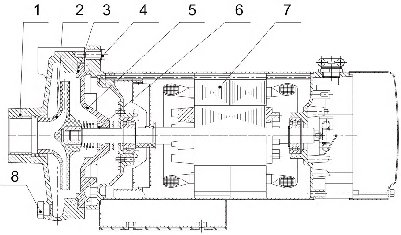 該泵配單相 ODP 結(jié)構(gòu)電機(jī),電機(jī)帶啟動(dòng) / 運(yùn)轉(zhuǎn)電容