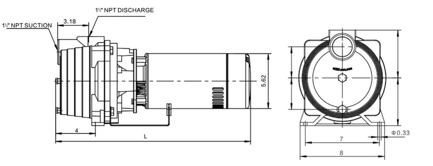 進(jìn)水口的口徑為 NPT 1.5”,出水口的口徑為 NPT 1.5”