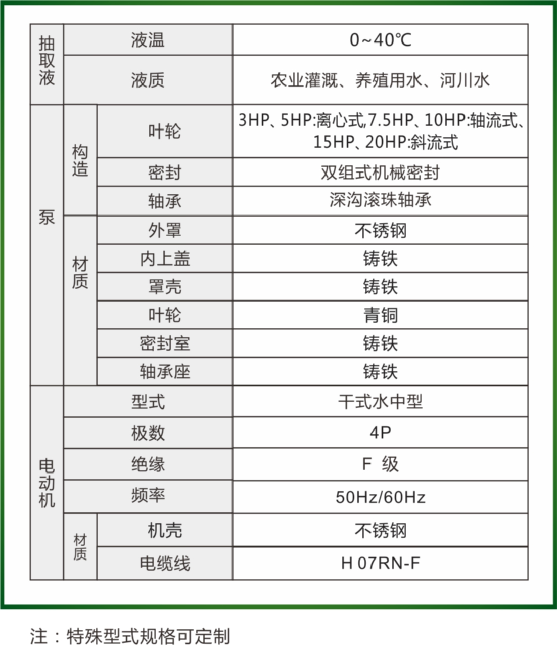 泵結(jié)構(gòu)堅(jiān)實(shí),干式電機(jī)、雙組式機(jī)械密封,防水佳,葉輪 導(dǎo)流裝置,水流順暢,可長期運(yùn)轉(zhuǎn)使用,泵防水等級符合IP68;